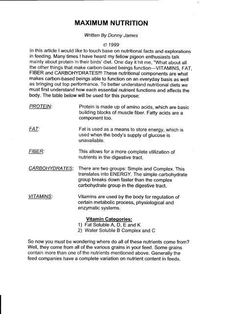 A good article on the effects of aflatoxins and the use of soybeans with pigeons. http://www.stevenvanbreemen.nl/?Hints_2_Win:A_few_facts_about_aflatoxin_and_soybeans Yes, peanuts and mung beans can be toxic to racing pigeons due to: *Peanuts* 1. *Aflatoxins*: Produced by Aspergillus molds, toxic to pigeons. 2. *Lectins*: Can cause intestinal damage, impairing nutrient absorption. 3. *High fat content*: Can lead to digestive […]