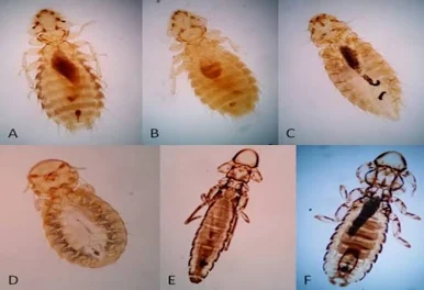 Avian lice (suborder Mallophaga) have a life cycle of approximately 3 weeks and normally feed on feathers or bits of dead skin. Lice can live for several months on the host but remain alive for only approximately 1 week off the host. Humans and other mammals can temporarily harbor avian lice.