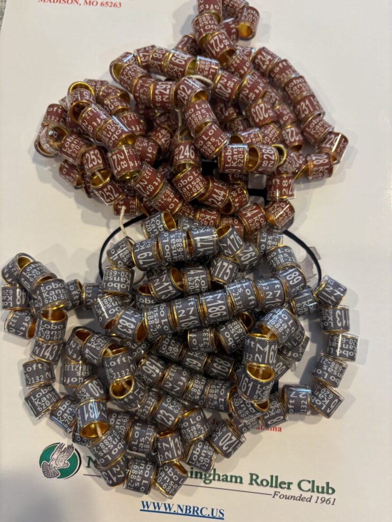 These bands are 10.3 mm tall (compared to 7 mm height of the smaller bands). These are the largest bands advisable for rollers. This gives you some latitude on when you band the squabs, but be aware that the larger size band means you cannot put them on as early or the squab will lose them. Breeders whose birds have muffs or boots prefer this size.