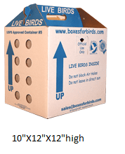 Approved shipping boxes are available in a number of sizes and may be purchased direct from Boxes for Birds. Click on the Boxes for Birds name or visit their website at: https://boxesforbirds.com/